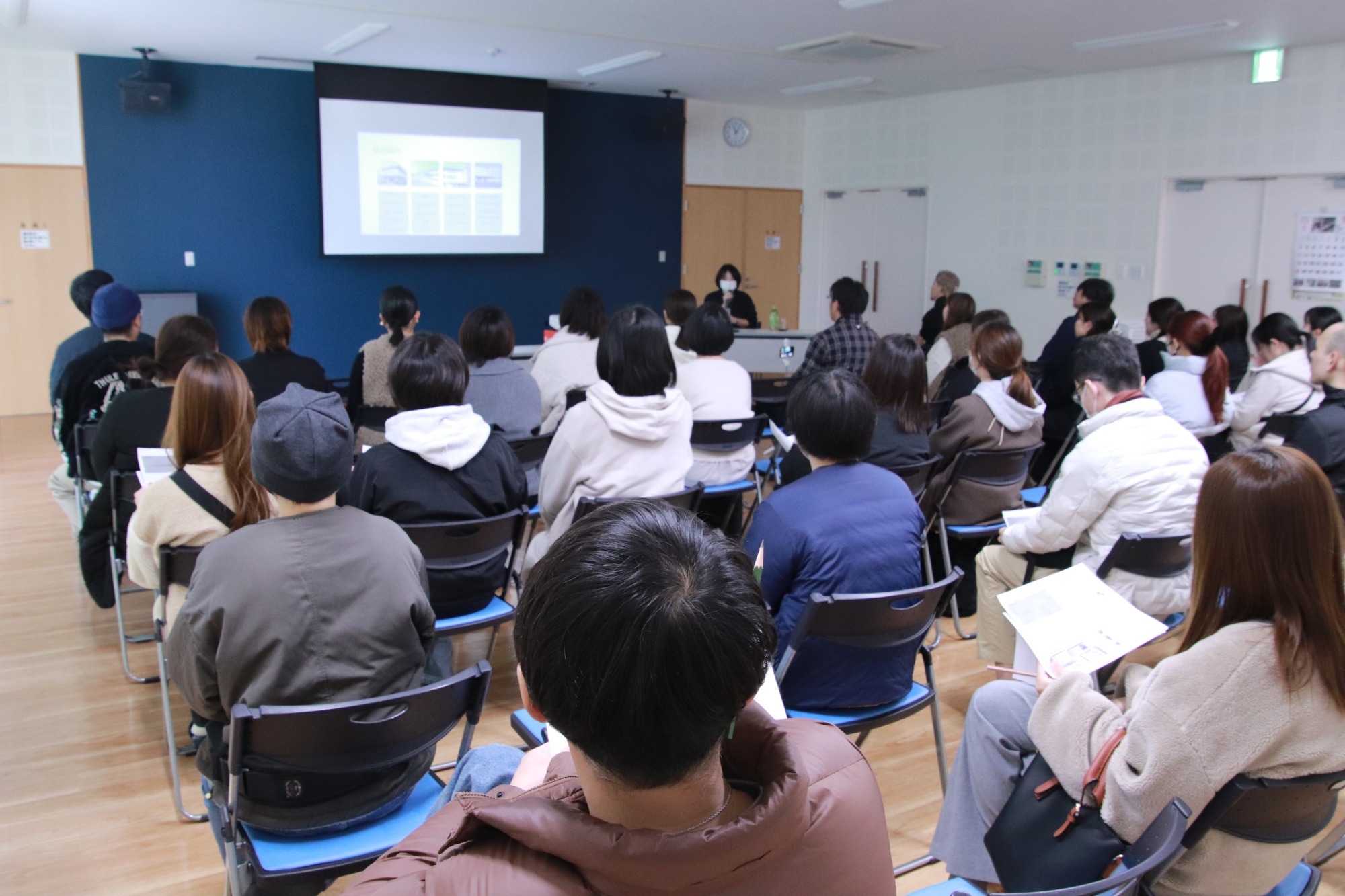 各クラスでの活動のあとは、言語聴覚士の髙山先生による子育て講演会がありました。日々の子ども達への関わりについてのお話を、皆さん熱心に聞いておられました。