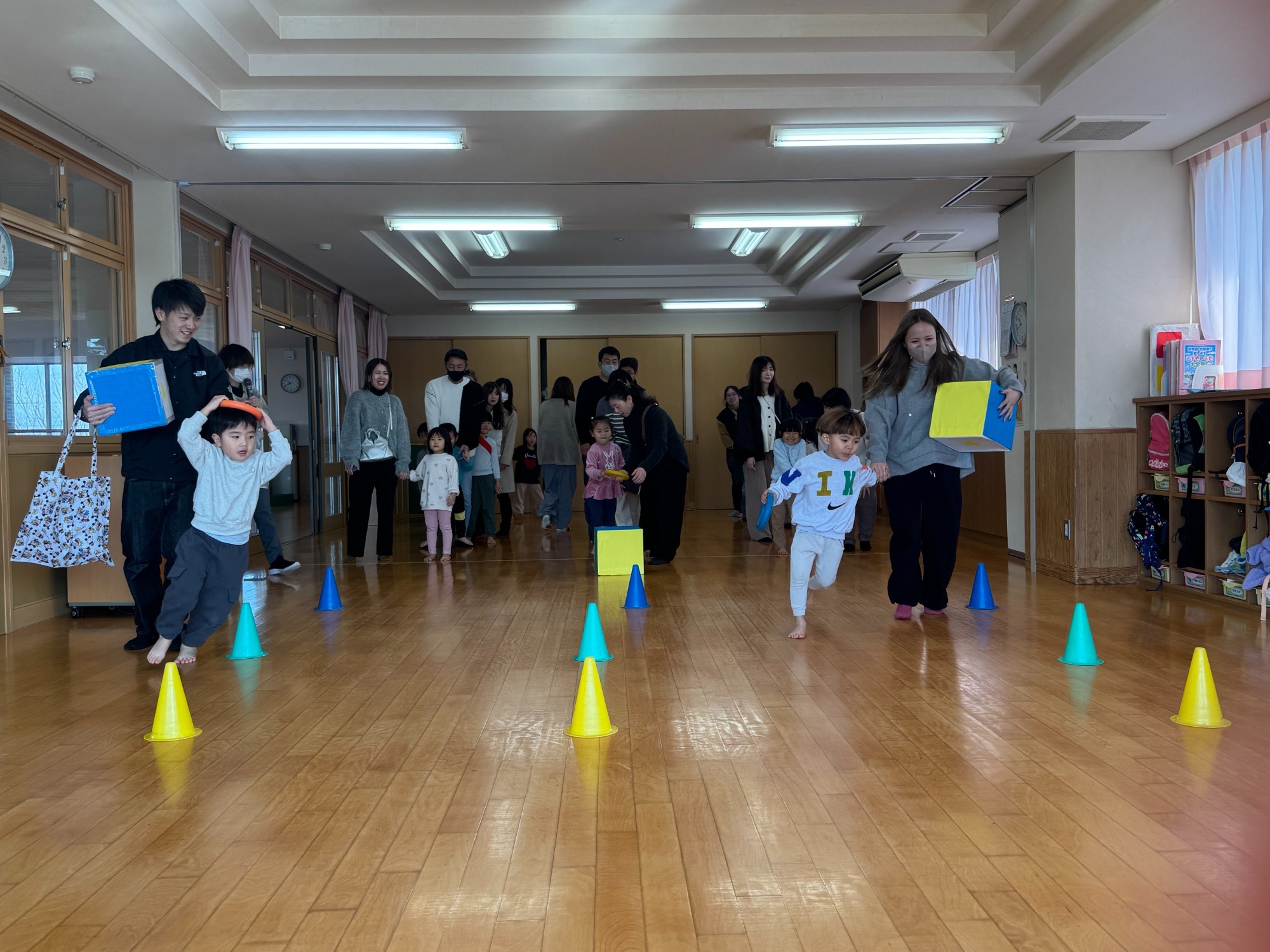 子ども達は、日頃の成果を存分に発揮し、元気いっぱいに競技へ取り組みました。親子競技では笑顔があふれ、年齢に応じた体育遊びでは一人ひとりが輝く姿を見せてくれました。