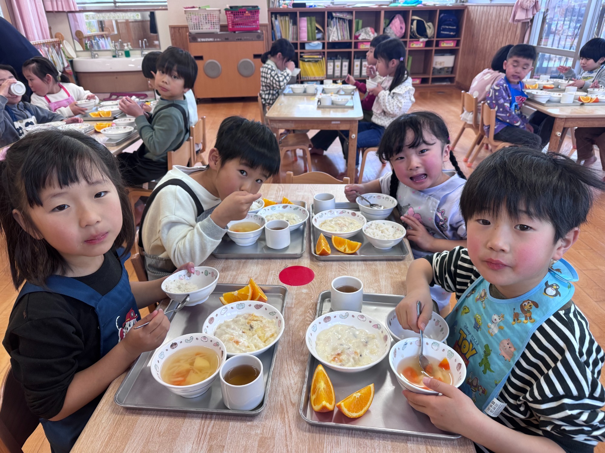 「また食べたいなあ」「おうちでも作ってもらおう!」と、笑顔いっぱいの給食時間になりました。卒園前の大切な思い出が、またひとつ増えました